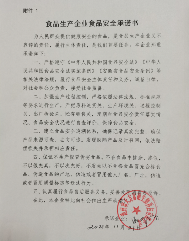 食品安全承諾書